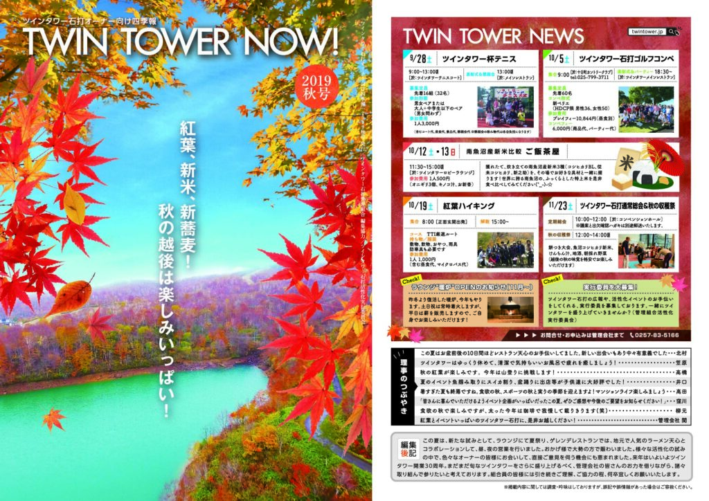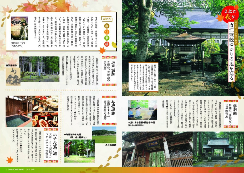 紅葉、新米、新蕎麦!秋の越後は楽しみいっぱい! P1-2 文化の秋に南魚沼〜長岡歴史探訪 直江兼続のゆかりの地を巡る P3-4 日本三大渓谷で紅葉狩り 秋の清津峡散歩 P5-6 食欲の秋、待望のスイーツ特集 ロールケーキVSバームクーヘン 館内情報 ラウンジ暖炉、滝のご案内 |