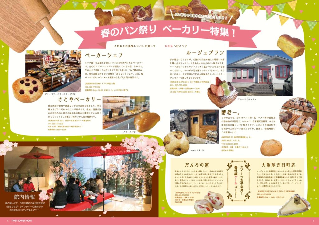 春こそ越後へ! P1-2新緑の絶景・秘境へGO! P3-4ツインタワー 石打近隣桜情報! P5-6春のパン祭り ベーカリー特集(ルージュブラン/酵母一/ベーカーシェフ/さとやベーカリー/大阪五日町店/だんろの家) |