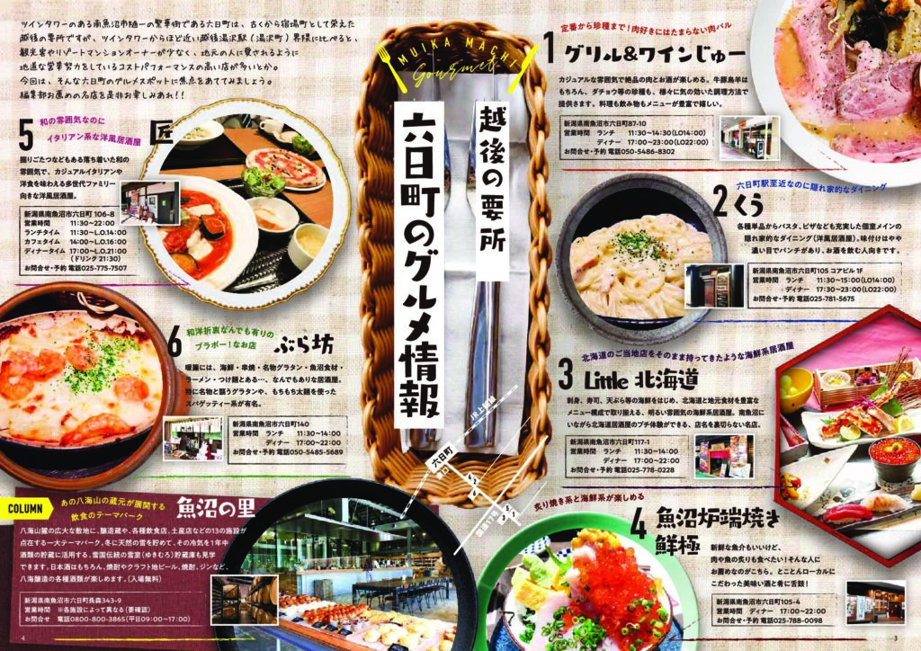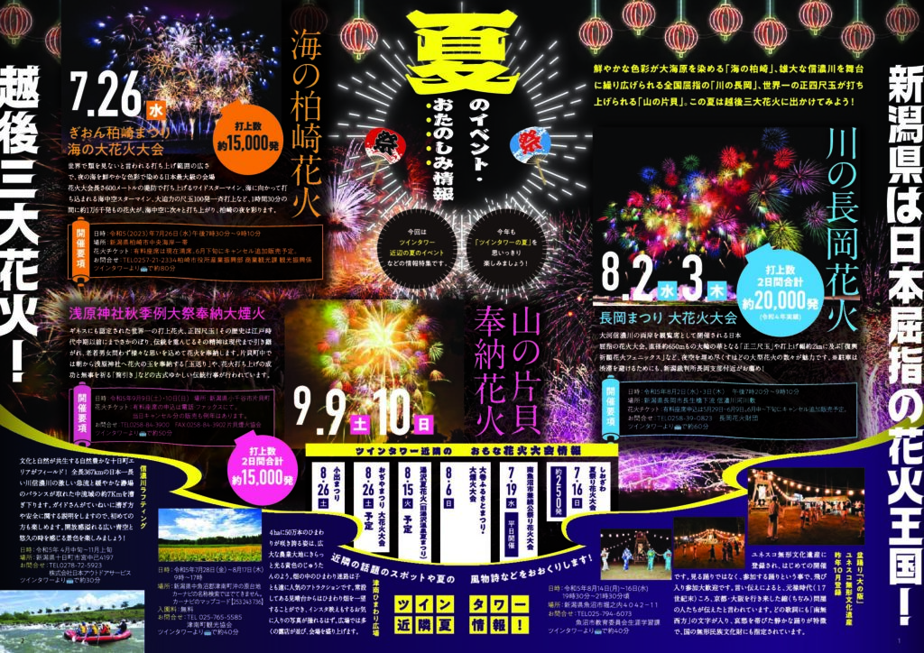 コロナ前の賑わいが復活!今年は越後の夏が熱い!! P1-2 新潟県は日本屈指の花火王国! P3-4 越後の要所 六日町のグルメ情報(グリル&ワインじゅー/くう/little北海道/魚沼炉端焼き鮮極/匠/ぶら坊) P5-6 近隣の魚野川で鮎釣りのススメ |